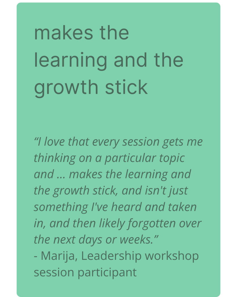 My mission: Help people develop grounded confidence and discover the leader within themselves – whether they want to create impact as an influential contributor or progress to formal management roles.